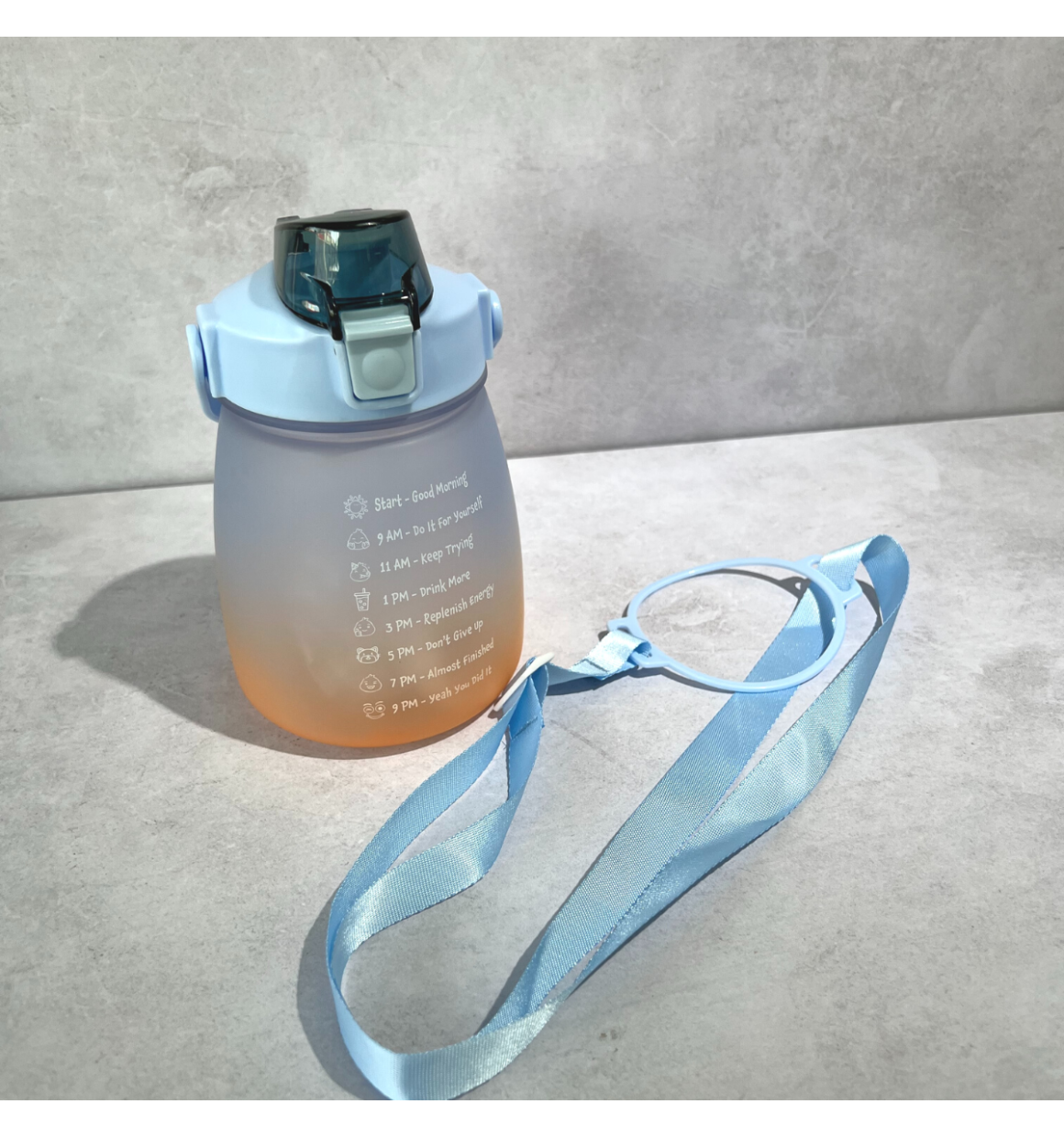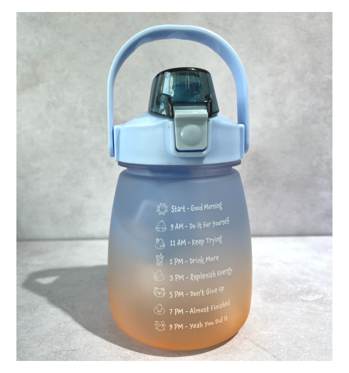 Projetada com marcador do tempo e citações inspiracionais, esta garrafa de água é perfeita para ajudar você se manter motivado para beber água suficiente durante todo o dia. Apresentado com aspecto em degradê e escala de capacidade ajuda você medir sua ingestão diária de água de água com facilidade e claramente. É divertido e fácil para qualquer objetivo de fitness incluindo perda de peso, ganho muscular, controle de apetite e saúde geral.