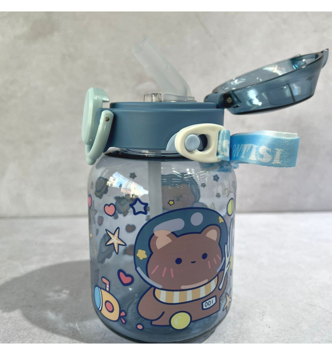 2. Garrafa Azul Infantil de Plástico com Canudo - 580ml
