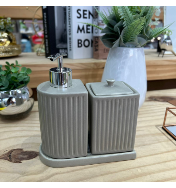 2. Jogo de Banheiro Nude com Listras - 3 Peças de Porcelana
