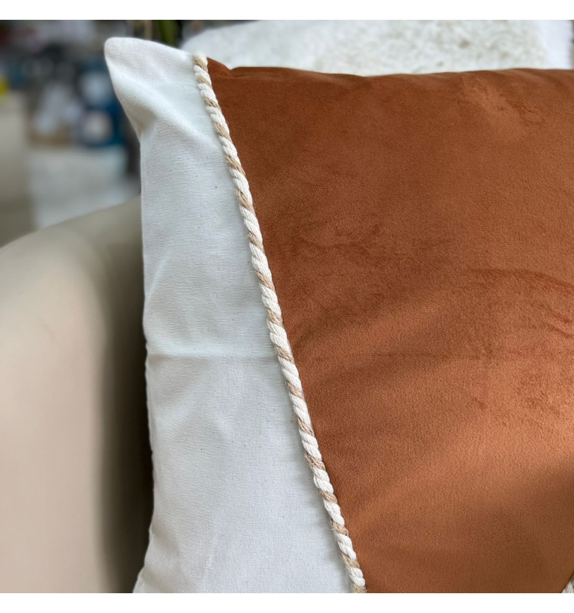 Capa de Almofada Marrom com Bege Donatella Cordão Sisal