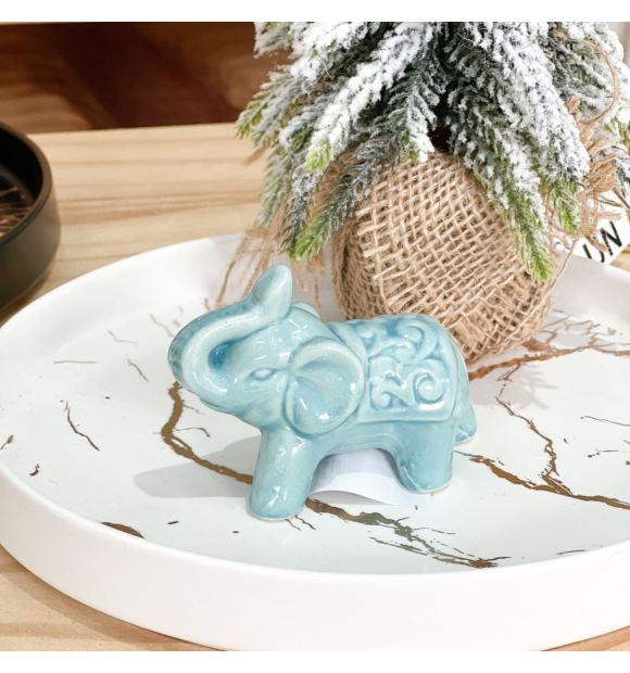Mini escultura de porcelana em formato de elefante. Símbolo da boa sorte, esse enfeite além de lindo, combina com todos os tipos de decorações e ambientes.