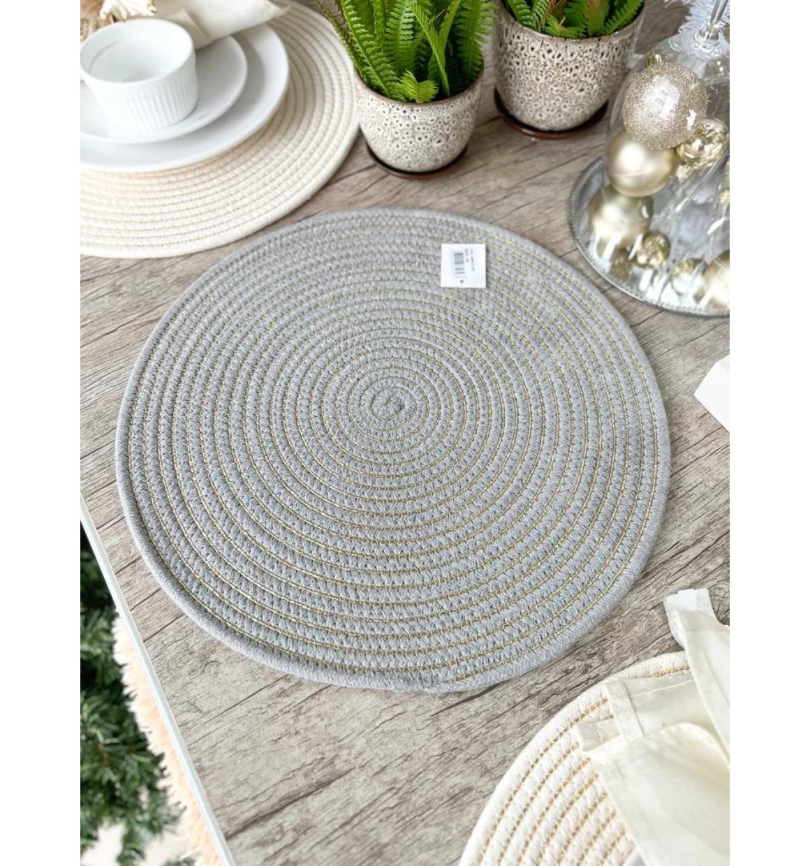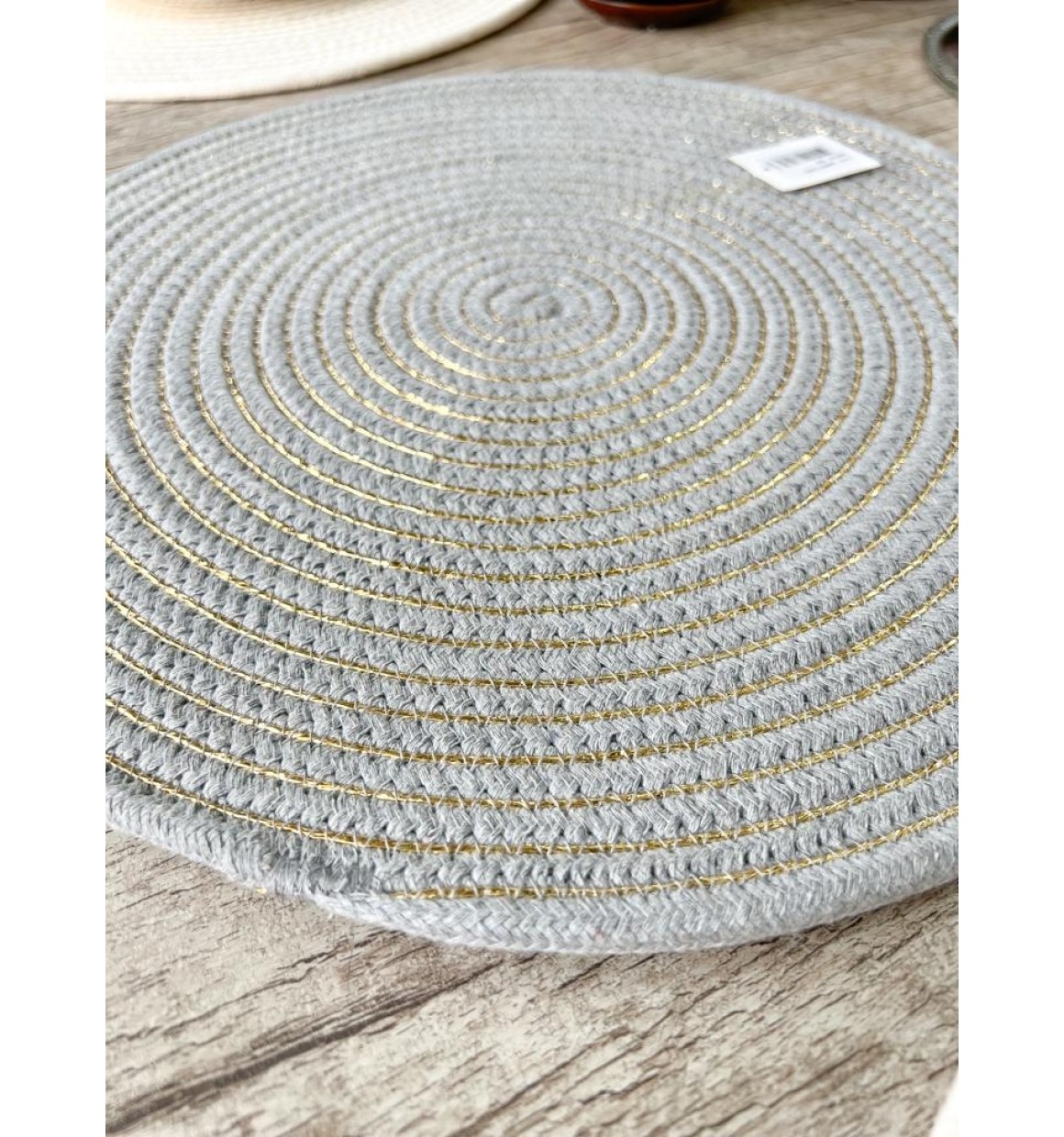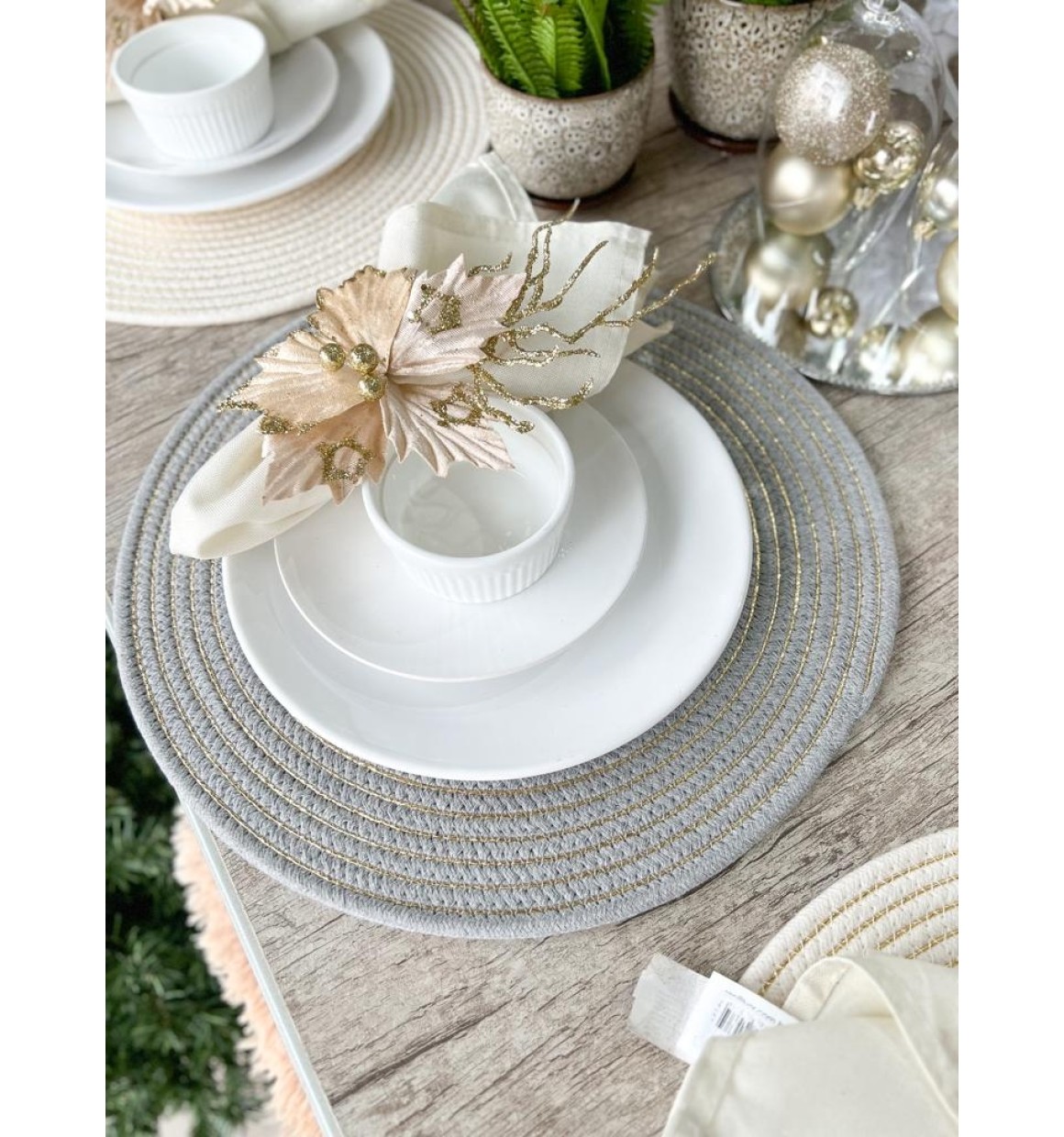 Com detalhes dourados, o jogo americano redondo é feito de Algodão e pode ser utilizado dos dois lados!