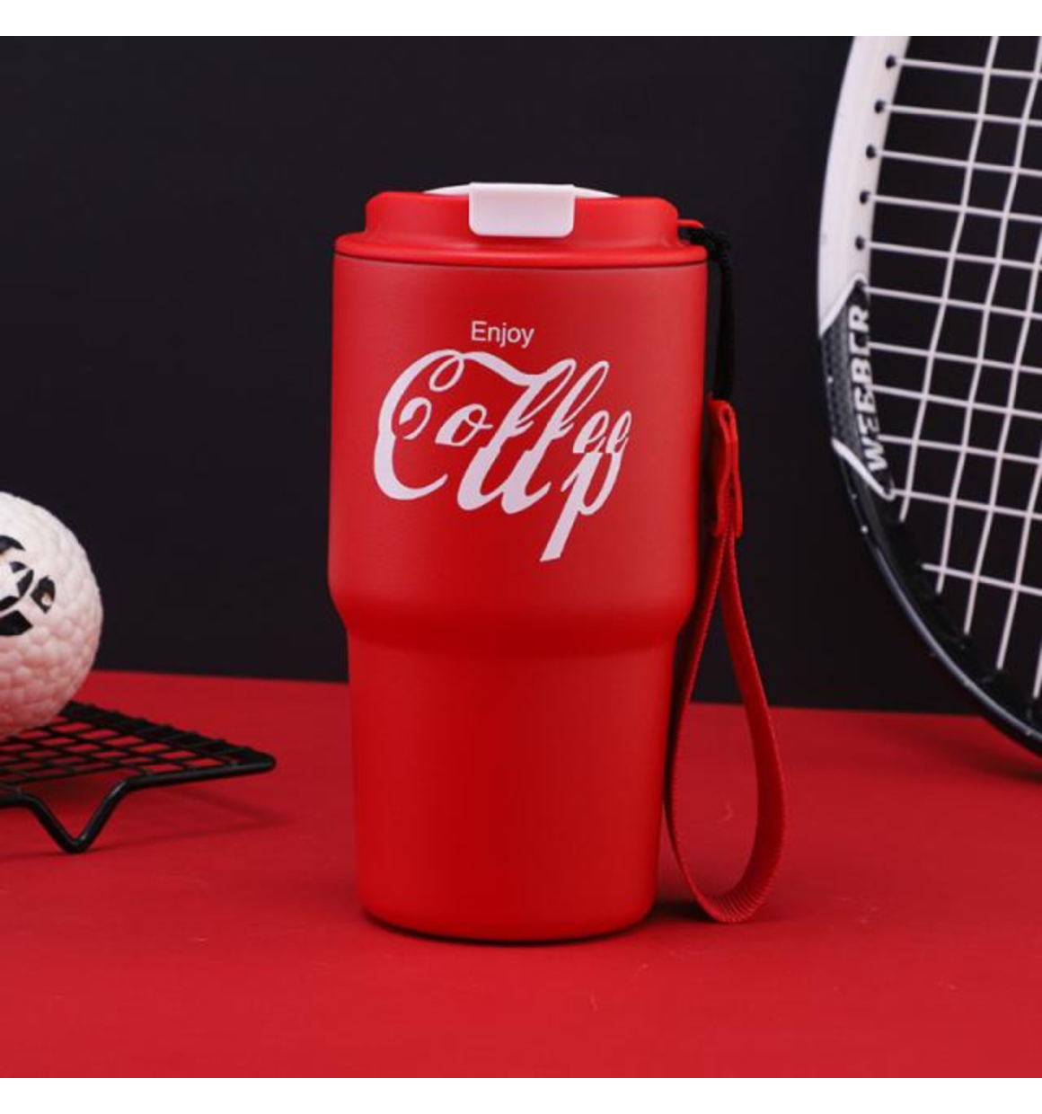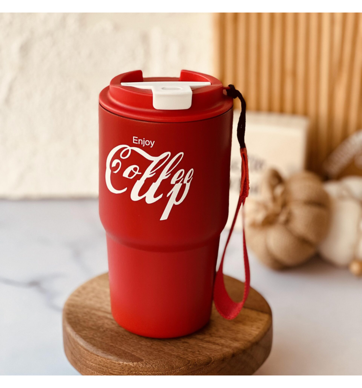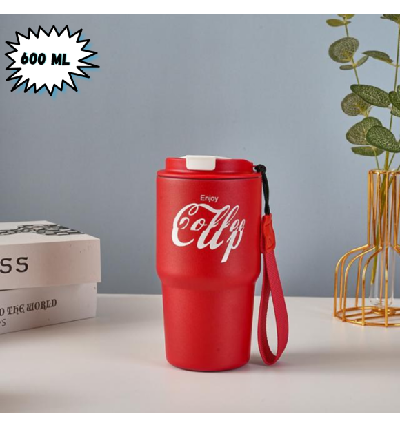 Copo Vermelho Térmica de Inox com Tampa 600 ml "Enjoy Coffee Cup"