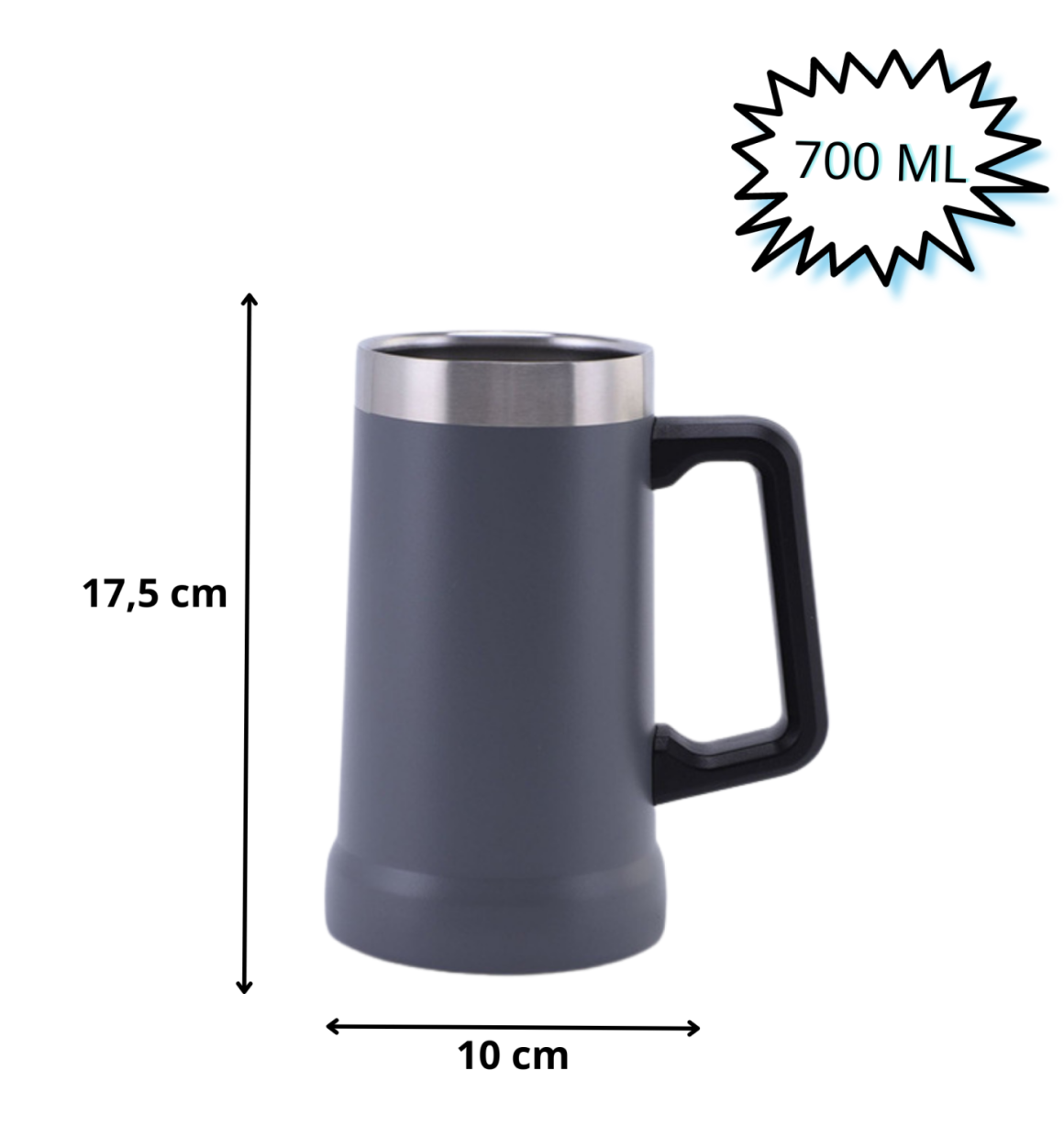 caneca térmica é perfeita para os apreciadores de bebidas na temperatura certa! Ideal para a conservação de bebidas quentes ou geladas por muito mais tempo! Bebidas quentes, a conservação é de até 1 hora. Bebidas geladas, até 5 horas . A caneca térmica dispõe de uma tecnologia especial, a  Sua parede dupla em aço inox com isolamento a vácuo, produz uma camada que protege a sua bebida do contato com a temperatura ambiente. Possui uma alça resistente que proporciona mais conforto para o consumo, tem um belo design, é feito de material resistente, as paredes não transpiram, é prática no uso e fácil de limpar.