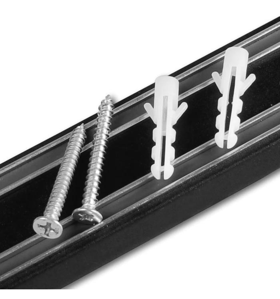 - Coloque a barra e parafuse parcialmente um parafuso na parede e depois o outro. Aperte os parafusos até a barra magnética ficar firme.