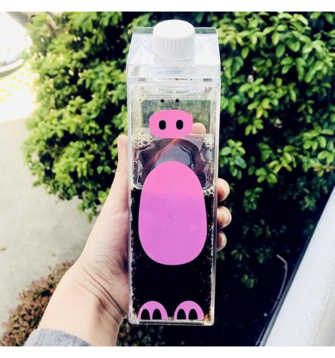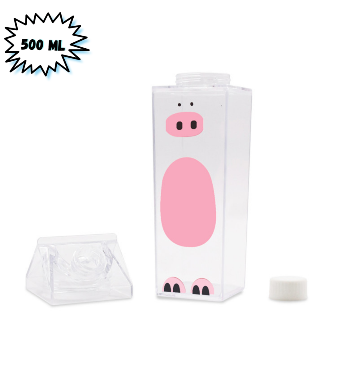 Garrafa Plástica em Forma de Caixa de Leite 500ml Decorada "Porco"