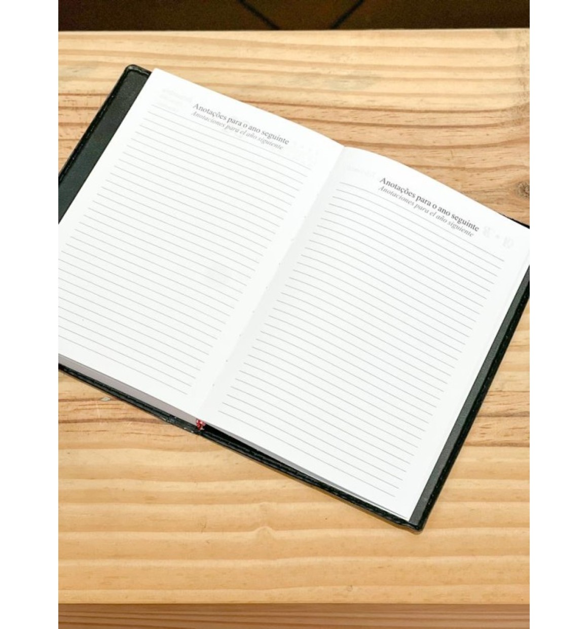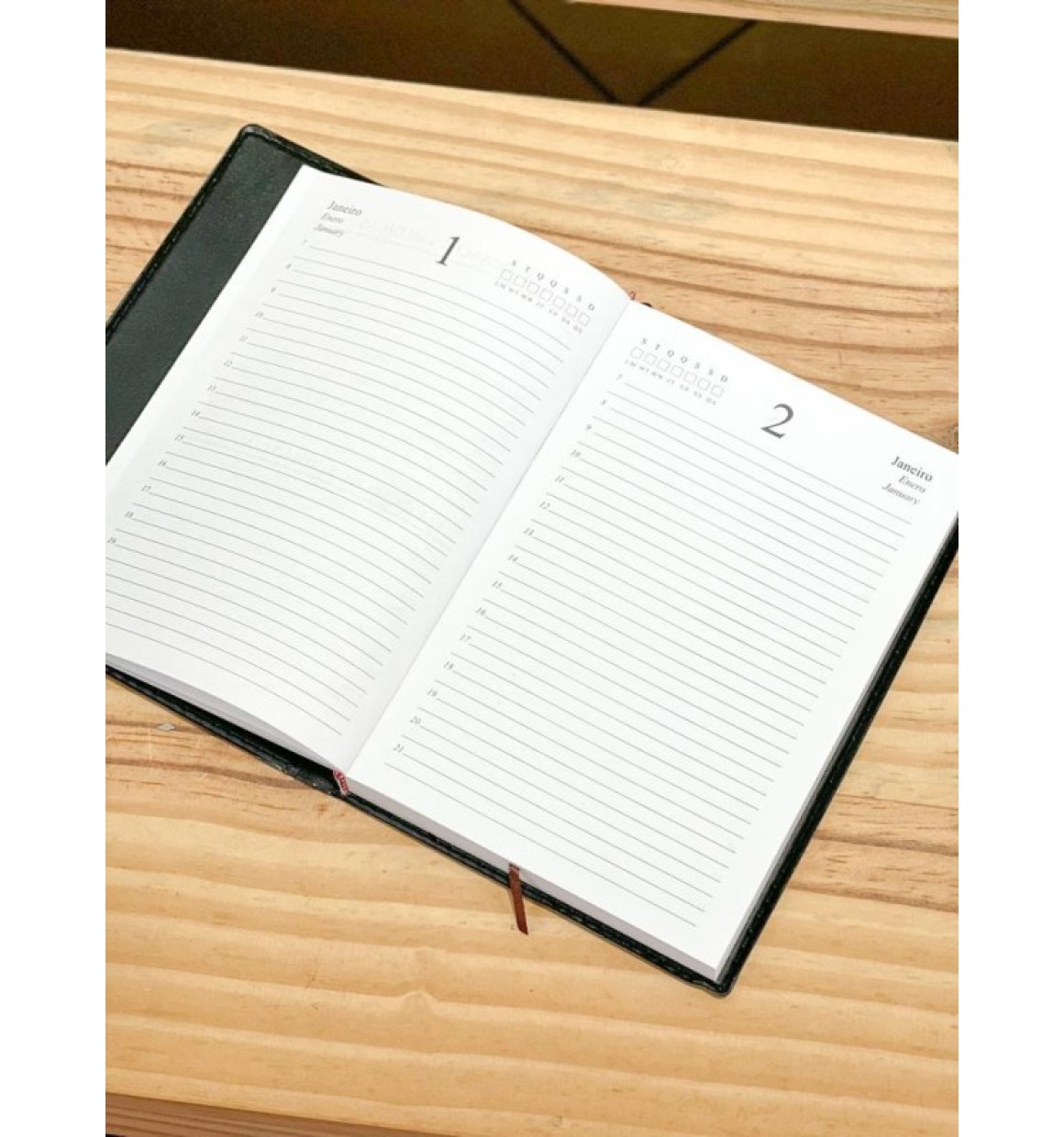 Agenda diária com material de toque macio para acompanhar o ano sem perder nada. Ideal para carregar na bolsa ou na mala para qualquer lugar.