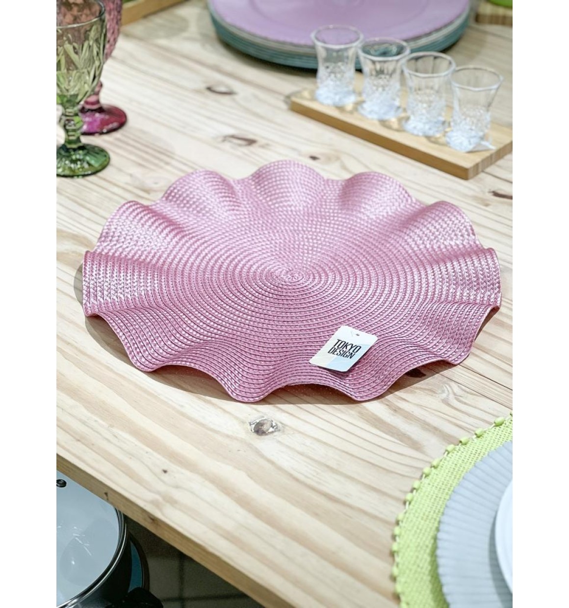 Arrase com este lindo Jogo Americano da Tokyo Design. Formato Redondo com Ondulações na Ponta. Feito em tramas dando um design Artesanal.