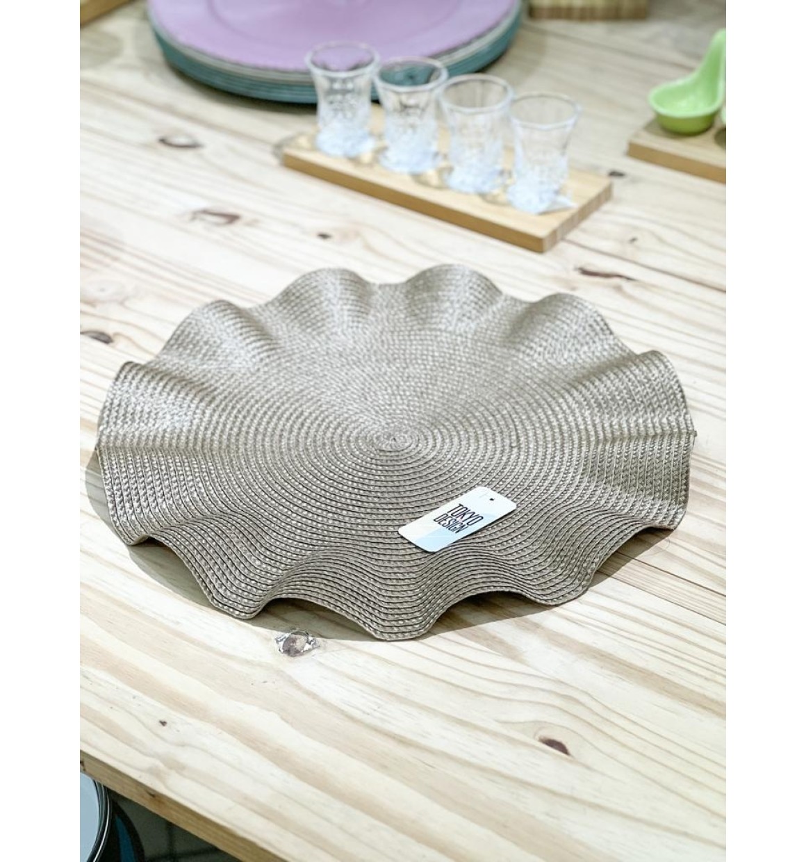 Arrase com este lindo Jogo Americano da Tokyo Design. Formato Redondo com Ondulações na Ponta. Feito em tramas dando um design Artesanal.