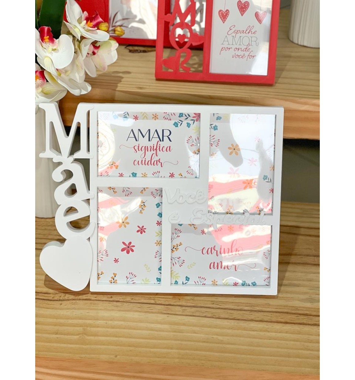 2. Porta Retrato Dia das Mães "Amar significa cuidar" Branco