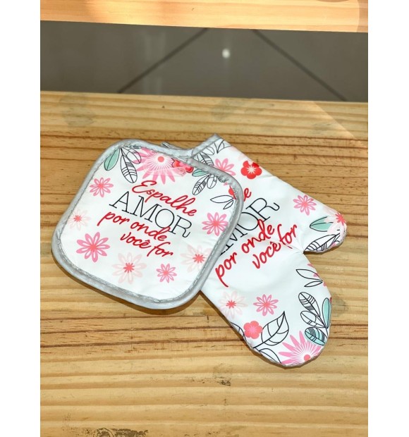 Luva e Suporte Para Cozinha"Espalhe Amor Por Onde For" - 2 Peças