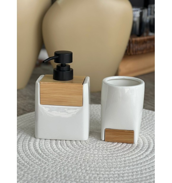 Jogo de Banheiro Branco c/ Detalhe em Bambu - 2 Peças