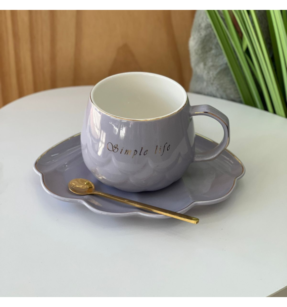 Xicara de Cerâmica Lilás ''Simple Life'' com Pires + Colher