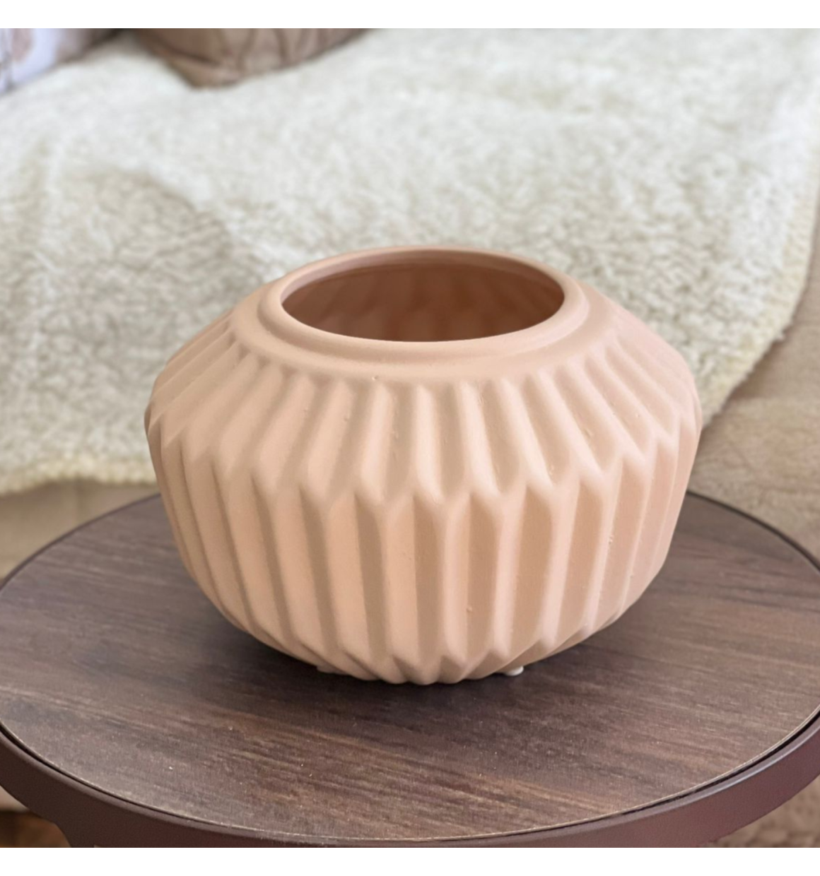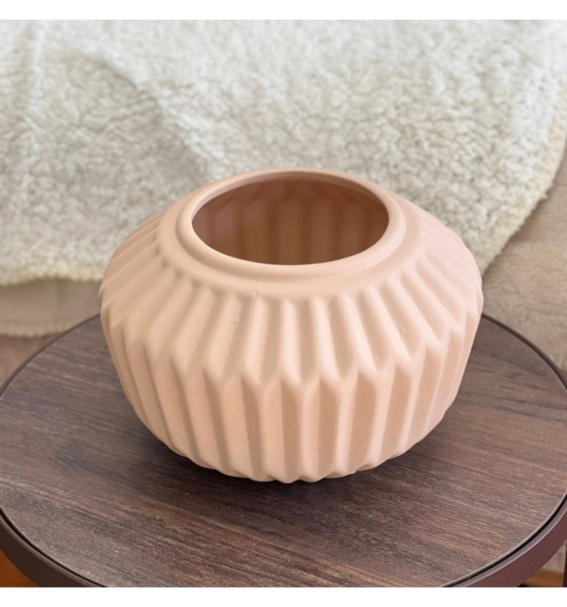 Feito em cerâmica de alta qualidade, o Cachepot Frizon apresenta um design moderno e minimalista, com acabamento Nude indigo que adiciona um toque de sofisticação ao ambiente.