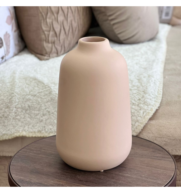 Feito de cerâmica de alta qualidade, o Vaso Potiche apresenta um acabamento fosco em uma tonalidade nude suave e sofisticada, adicionando um toque de delicadeza ao ambiente.