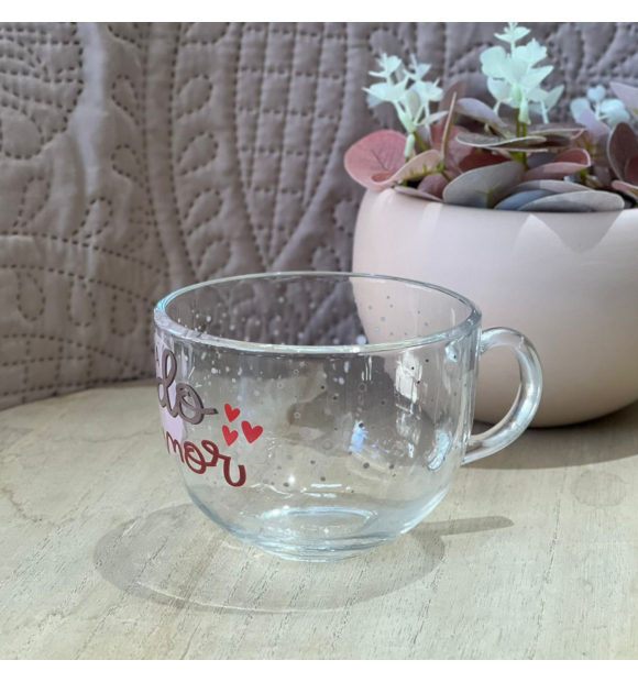 Uma caneca cheia de amor e inspiração! Apresentamos nossa Caneca de Vidro "Faça Tudo Amor" de 430ml. Sinta a energia positiva a cada café da manhã enquanto lembra-se da importância de fazer tudo com amor e dedicação. Aproveite o café da manhã e espalhe boas vibrações em cada momento.