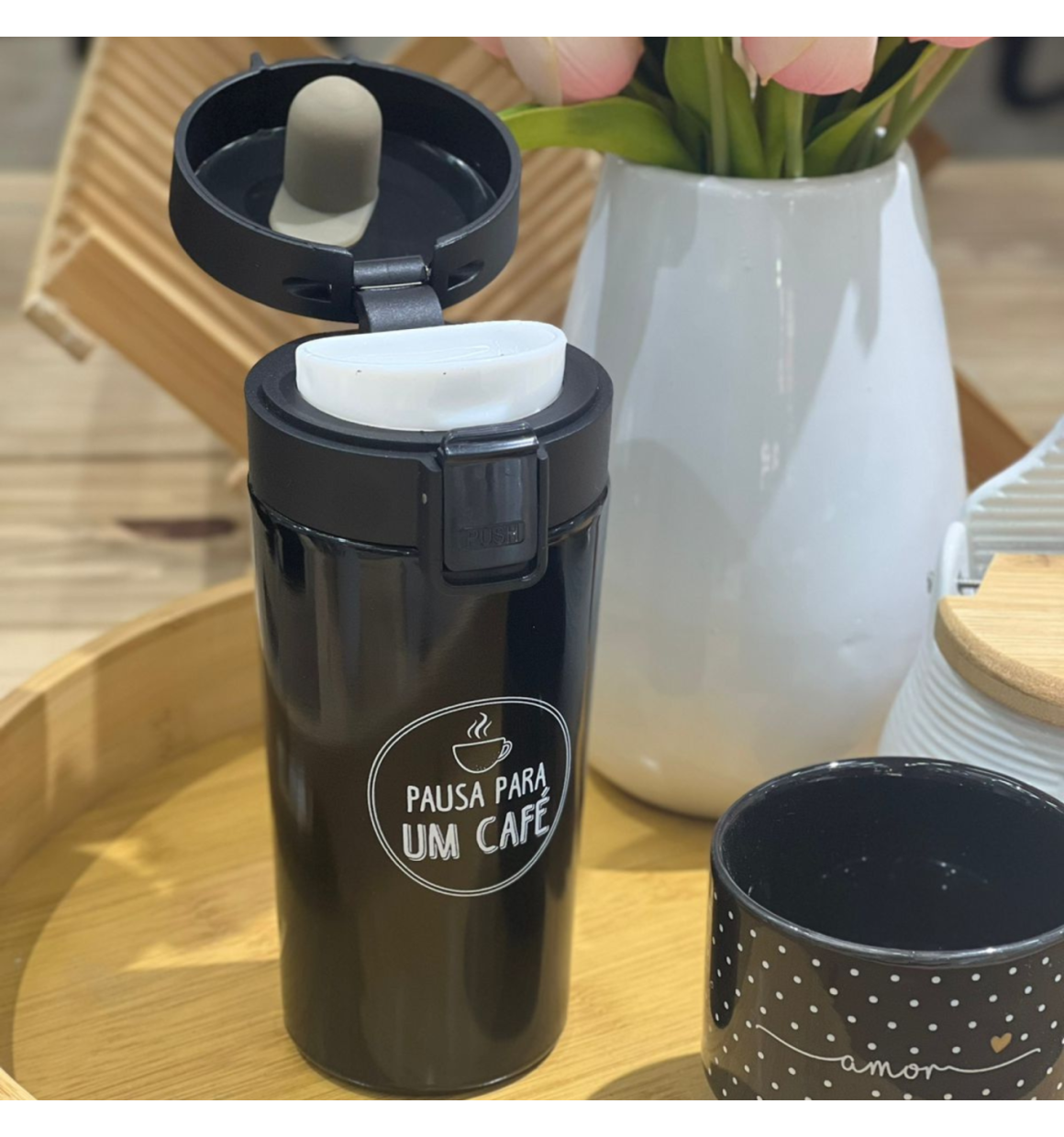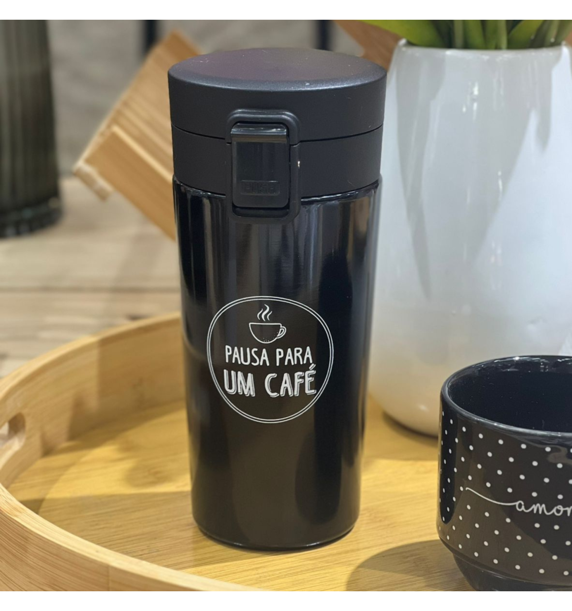 Copo Térmico Preto " Pausa para um Café " 300ml