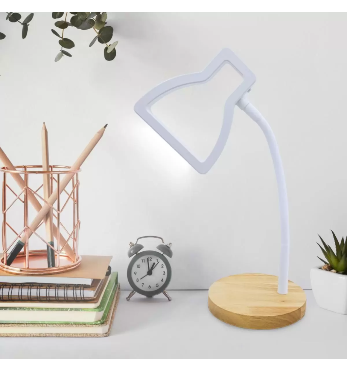 Luminária - Base em Madeira - Haste Articulada - USB - 4 Funções Led - Botão Diminuição de Led Medidas: 41,5x14.8cm Composição: Plástico
