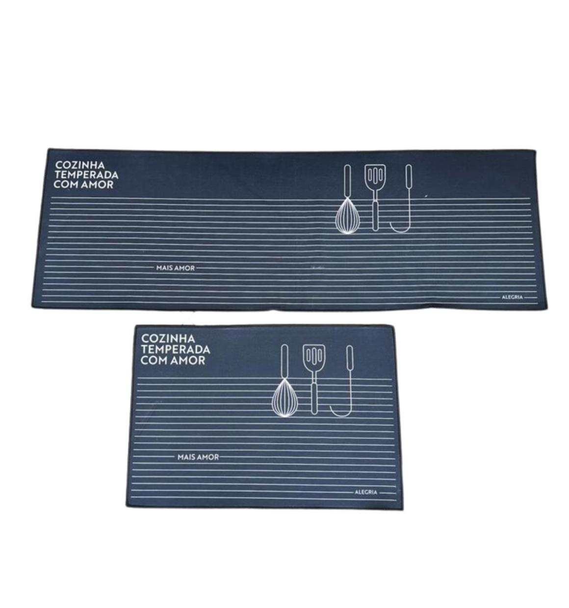 Medidas: Passadeira - 39cm x 119cm, Tapete - 59cm x 39cm.