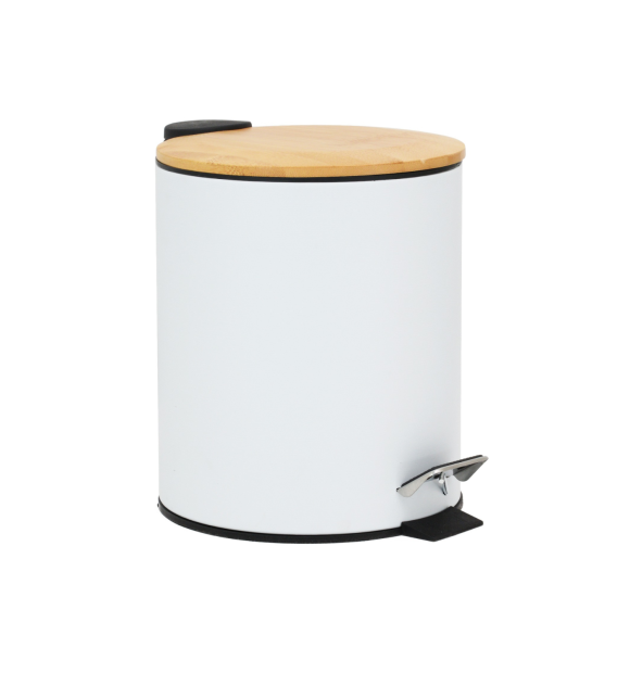 Lixeira 3L Branca com Tampa de Bambu com Pedal