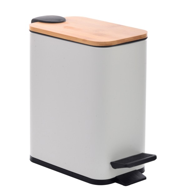 Lixeira Branca Styllus com Tampa de Bambu 5L