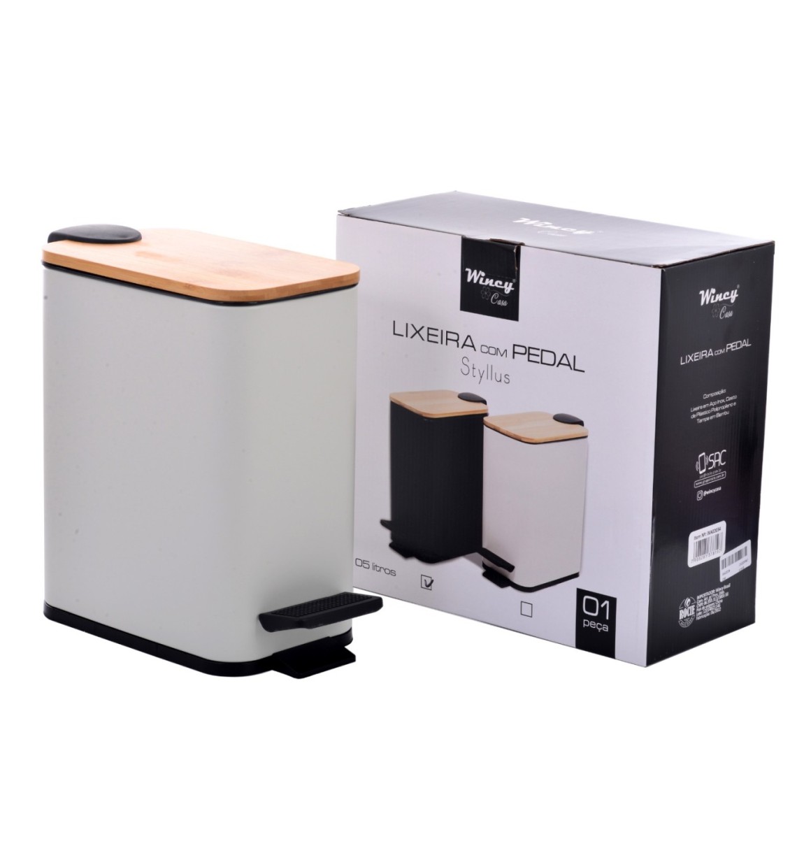 Mantenha o ambiente organizado e sofisticado com a Lixeira Branca Styllus com Tampa de Bambu 5L.