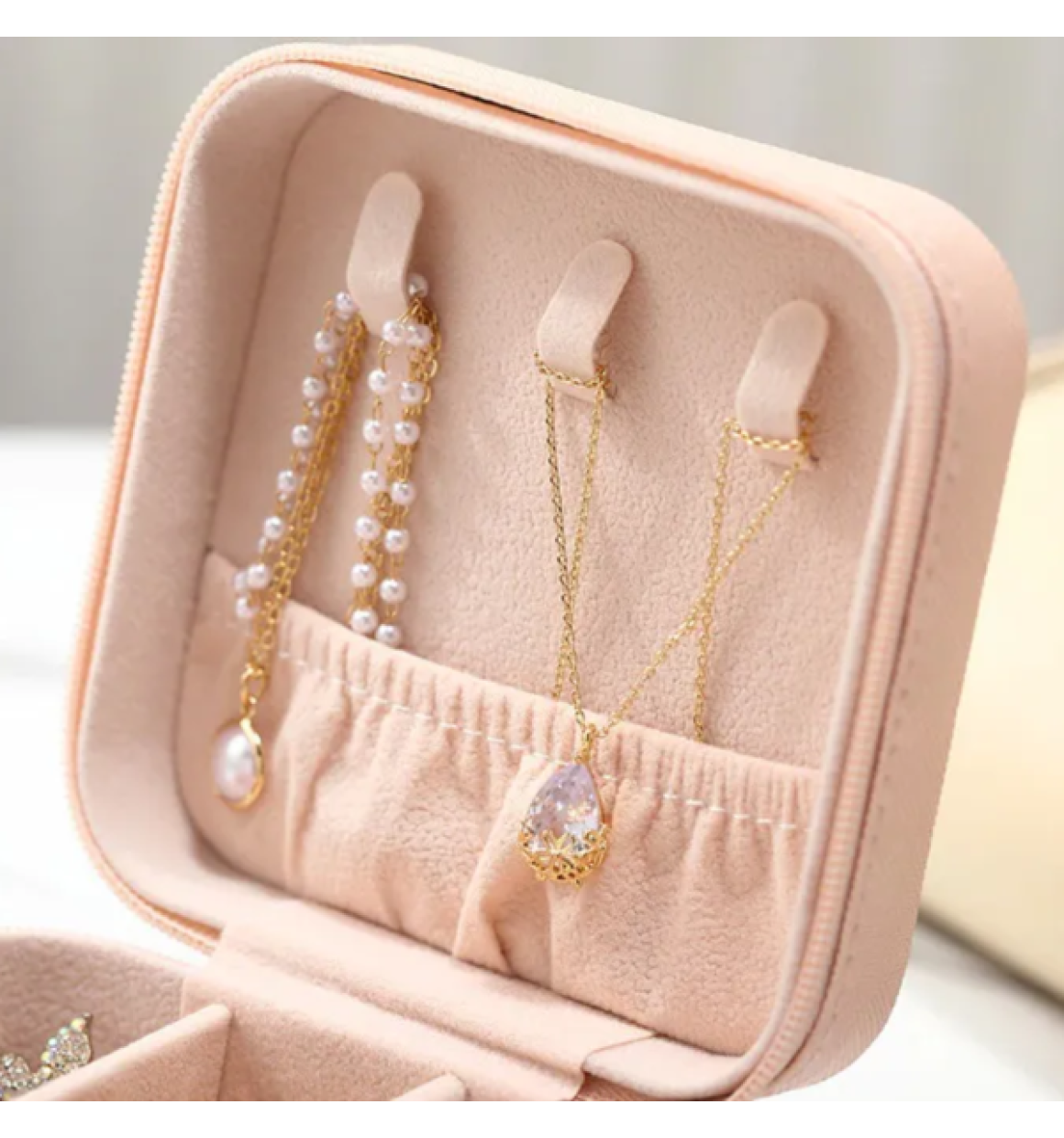 Fecho Confiável: O fecho de zíper permite abrir e fechar o porta joias de forma prática e segura, mantendo suas joias no lugar mesmo quando em movimento.