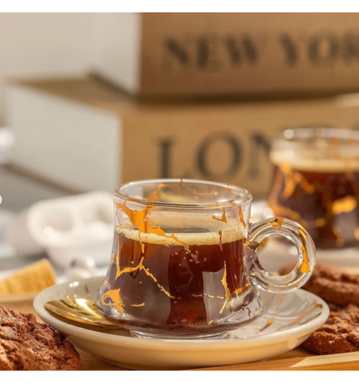 Eleve sua experiência de degustação - pegue sua Xícara de Vidro Marmorizada agora!