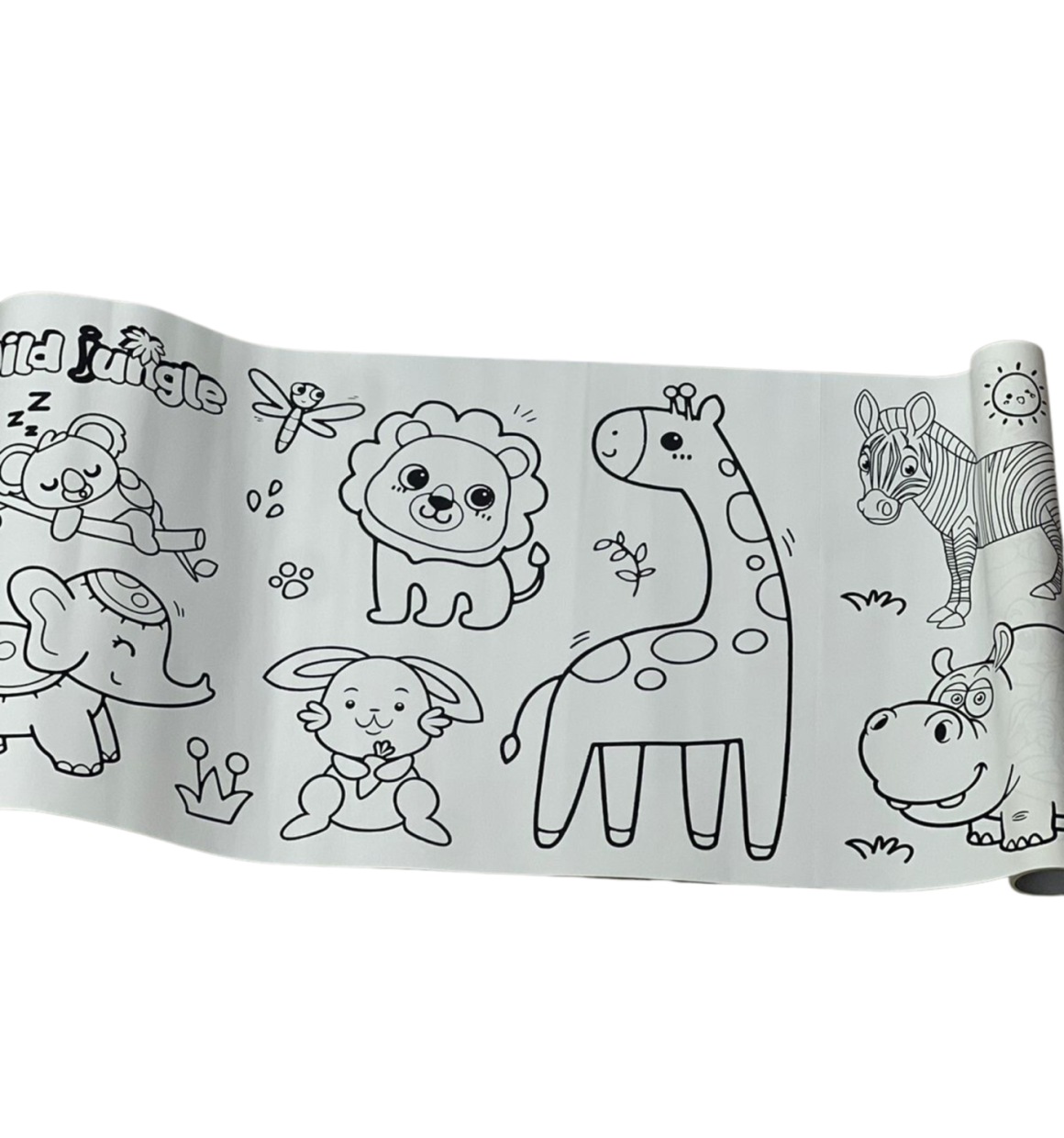 Este rolo de papel para colorir é feito com acabamento fino com superfície lisa. As crianças podem colorir livremente os desenhos e se divertir muito.