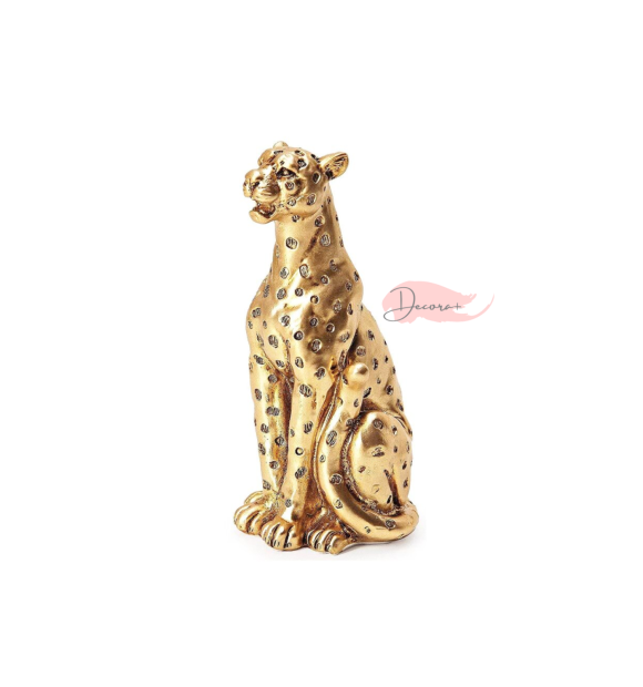 Escultura Leopardo em Poliresina Dourado Peq 11cm