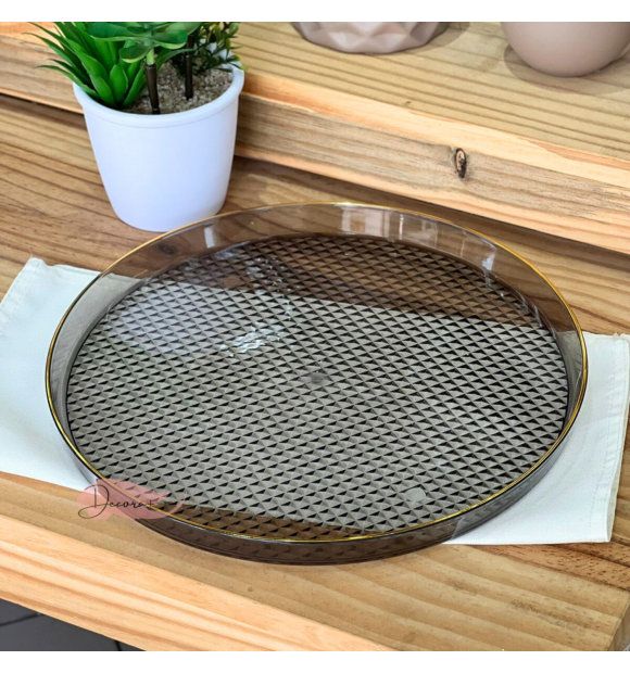 Bandeja Fumê Redondacom borda Dourada - (G)