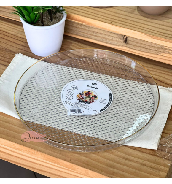 Bandeja Transparente Redondacom borda Dourada - (G)