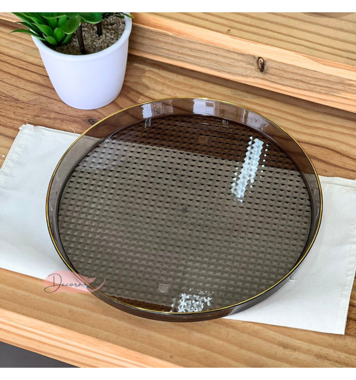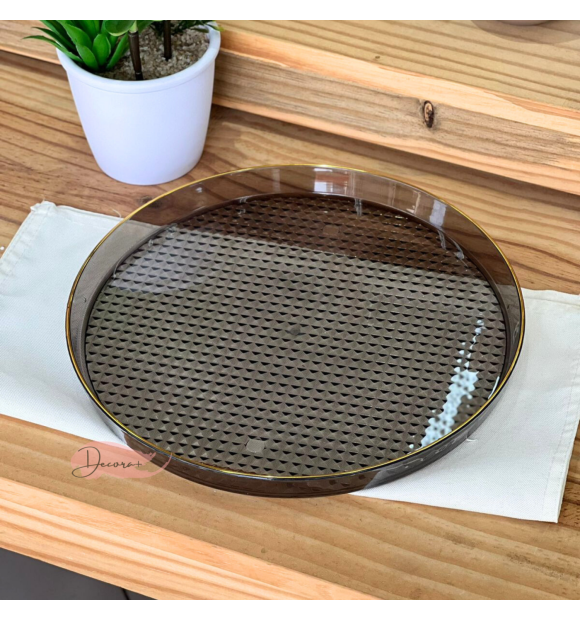 Bandeja Fumê Redonda com borda Dourada - (P)