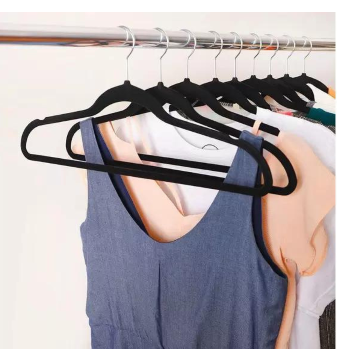 Mantenha seu guarda-roupa organizado e suas roupas impecáveis com o Kit de Cabides Preto com Revestimento de Veludo. Este conjunto de cabides elegantes e duráveis é projetado para manter suas roupas no lugar, evitando vincos. Com o revestimento de veludo, suas roupas permanecerão intactas.