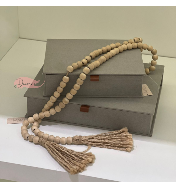 Os colares decorativos de mesa são tendência na decoração. As peças são elegantes e trazem sofisticação aos ambientes. Confeccionados em madeira, são muito versáteis e podem ser usados na mesa de centro da sala de estar, aparadores, mesas laterais ou compondo qualquer ambiente junto a outros objetos de decoração. Podem ainda ornamentar vasos como se fossem colares , bandejas ou pendurados na parede.