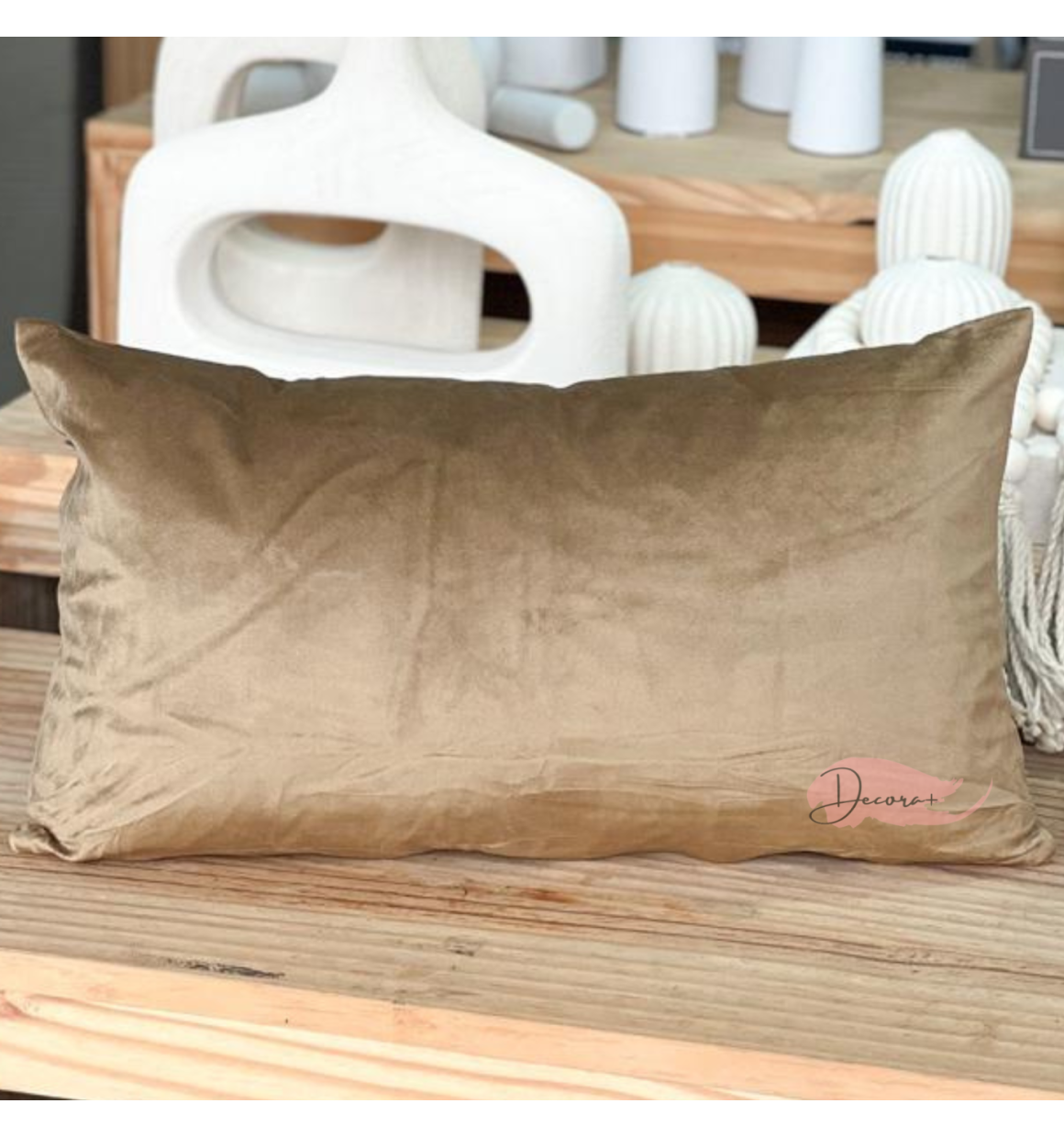 Capa de almofada retangular com zíper, em tecido veludo.