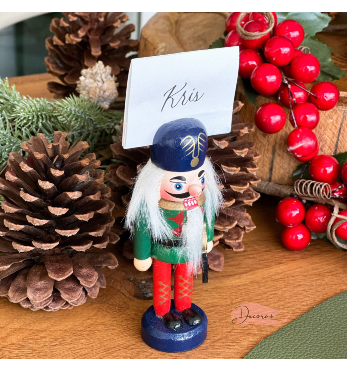 Marcadores de lugar em formato de quabra nozes, confeccionado em madeira em diversas cores. O kit possui 4 marcadores de lugar.