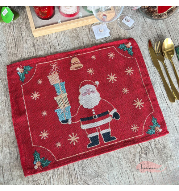 Jogo Americano de Natal em Tecido - Papai Noel com Presentes 33cm X 45cm