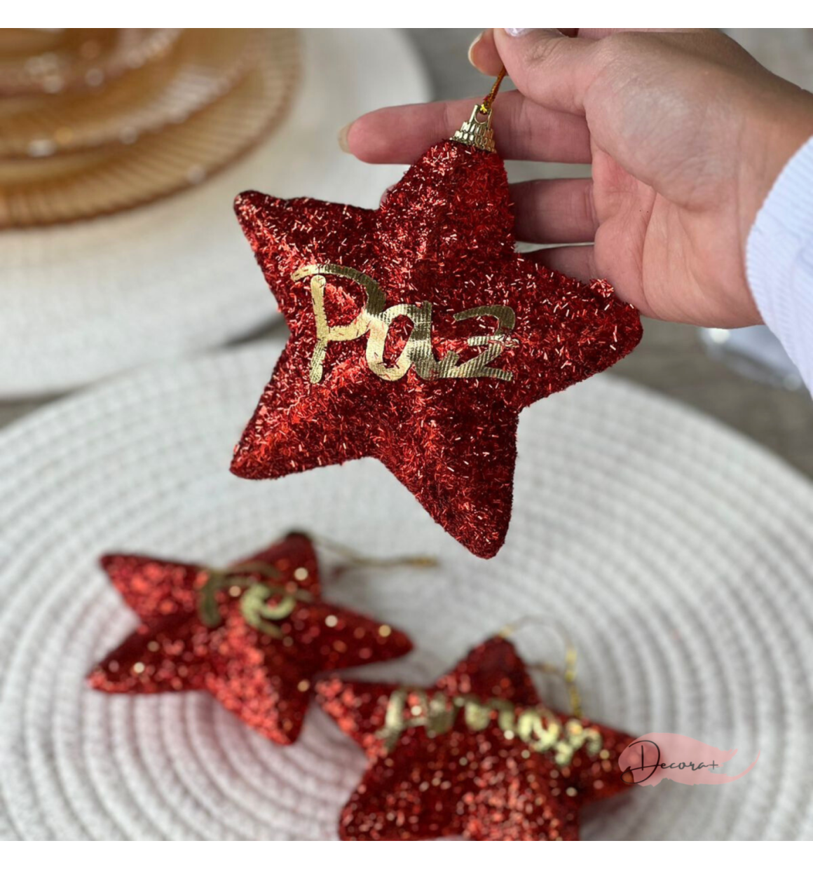 Celebre o espírito natalino com nossa Estrela Vermelha "Paz" de 12cm. Pendure-a na árvore ou decore qualquer espaço com esta mensagem de carinho que ilumina não apenas o ambiente, mas também os corações.