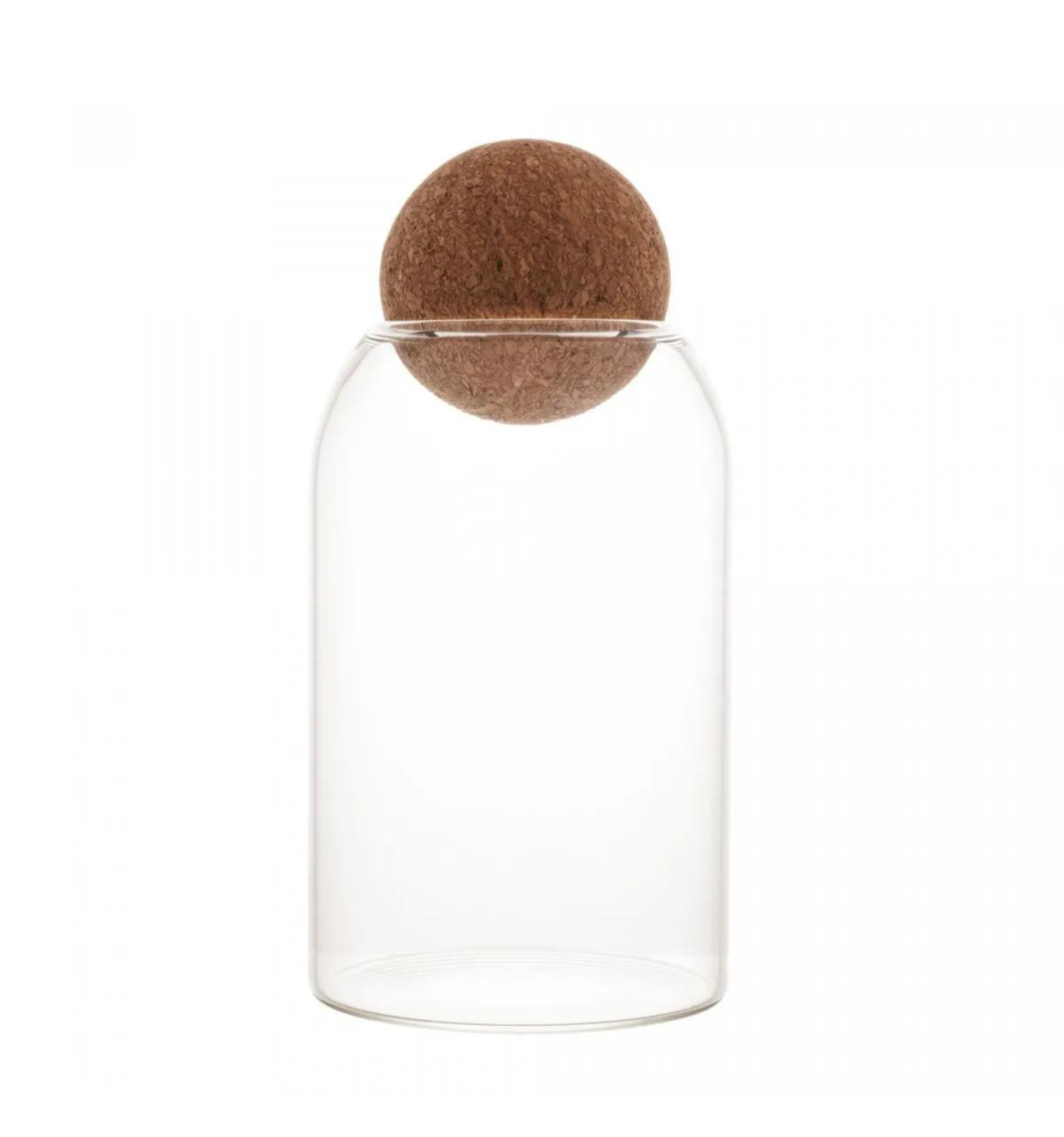 feito de vidro borossilicato de alta qualidade, torna mais fino, mais leve, capaz de resistir a choques térmicos, arranhões e quebras. A tampa redonda de cortiça é feita de madeira natural e no formato de Esfera.