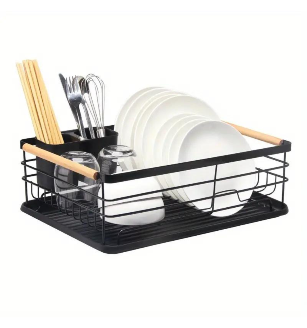 Escorredor de Louças com Porta Talheres e Bandeja - Preto