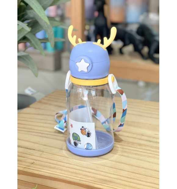 Hidratação divertida para os pequenos exploradores! Adquira a Garrafa Azul de Plástico Infantil com Chifre de Alce agora e faça da hora da água uma brincadeira inesquecível.