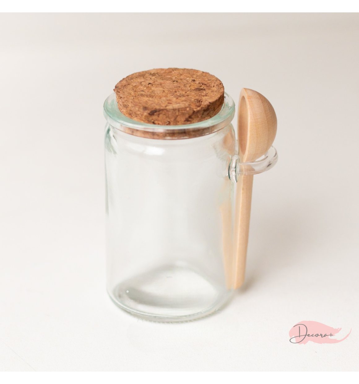 Pote de Vidro com Colher de Madeira e Tampa Rolha de Cortiça, ideal para manter seus alimentos armazenados e seguros prático e compacto com eficiente tampa que veda perfeitamente, protegendo e conservando o alimento fresco por muito mais tempo. Perfeito para acomodar alimentos secos, mantendo a despensa, armário ou bancada sempre organizados.