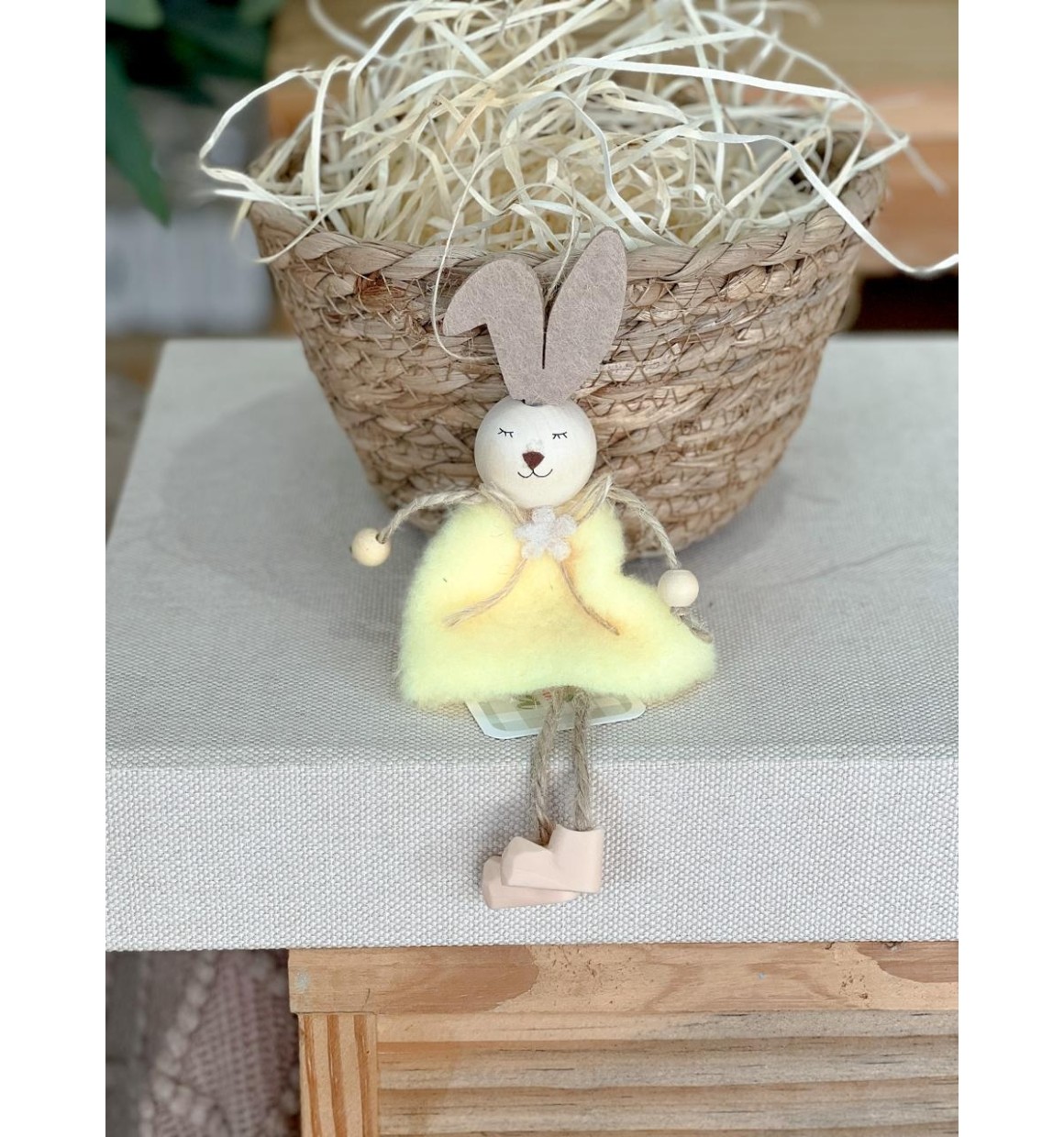 Enfeite Coelha de Páscoa 18cm Roupinha Amarela