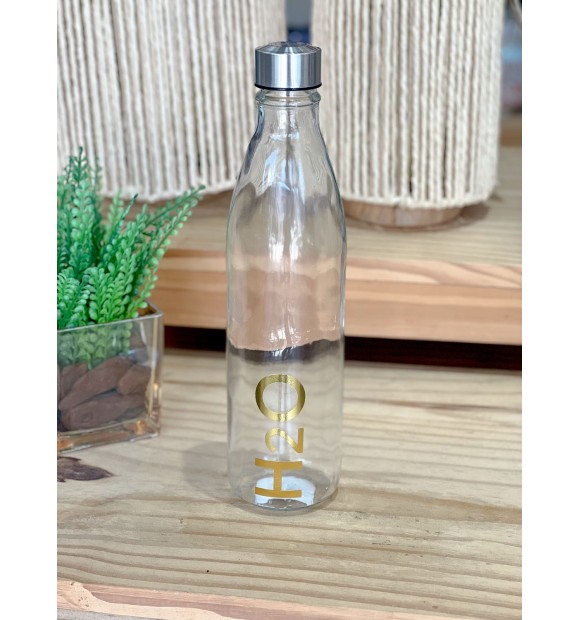Garrafa de Vidro com Detalhe Dourada H2O - 1L