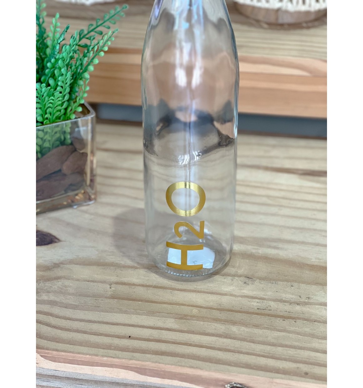 2. Garrafa de Vidro com Detalhe Dourada H2O - 1L