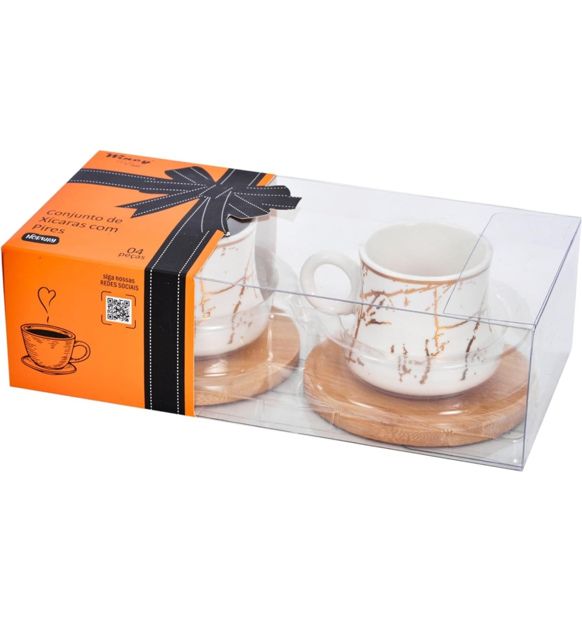 Conjunto de Xícaras Porcelana com Pires Bambu Normay 4 Pçs 80ml