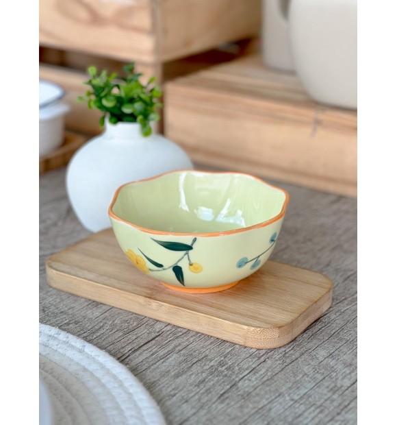 Com um design floral vibrante em tons de amarelo, este bowl é perfeito para servir pequenas porções de sobremesas, snacks ou acompanhamentos, adicionando um toque de charme a cada refeição.
