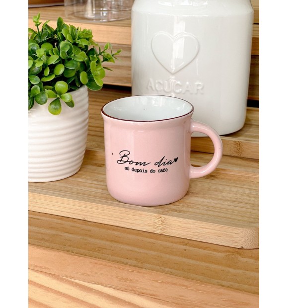 Caneca "Bom dia só depois do Café" Rosa 160ml Mod 5