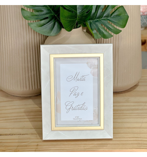 Porta Retrato Bege "Muita Paz e Gratidão" 10cm X 15cm